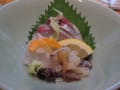 左、ひらめ。上、しまあじ。右、有明海の赤クラゲ。